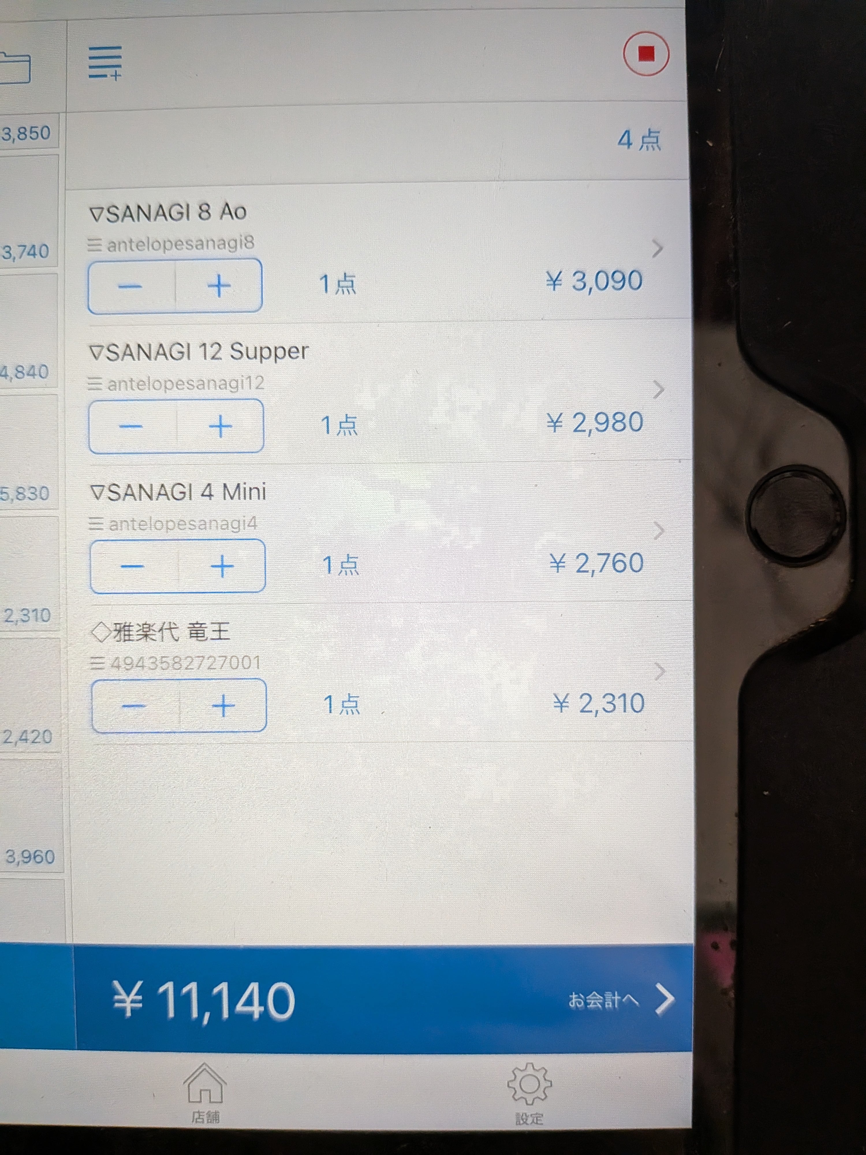 お酒代金(antelope3種類+雅楽代竜王) ¥11,140